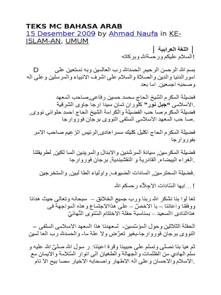 CONTOH MC 3 BAHASA Bhs. Contoh Teks Mc Bahasa Arab Beserta Harakat Dan Artinya. Sepuluh dasar kemampuan guru februari 24.